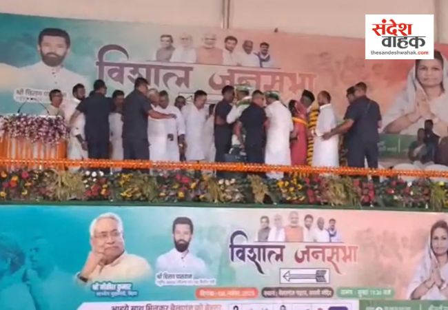 Sandesh Wahak Digital Desk: बिहार विधानसभा चुनाव के दूसरे चरण (11 नवंबर) के मतदान से पहले राजनीतिक दलों का धुआंधार प्रचार जारी है। इसी क्रम में शनिवार को गया जिले के बेलागंज पड़ाव स्थल पर आयोजित एक चुनावी जनसभा में मुख्यमंत्री नीतीश कुमार का मंच अचानक धंस गया। हालांकि, सुरक्षाकर्मियों की तत्परता से मुख्यमंत्री नीतीश कुमार को सुरक्षित नीचे उतार लिया गया और कोई बड़ा हादसा नहीं हुआ।