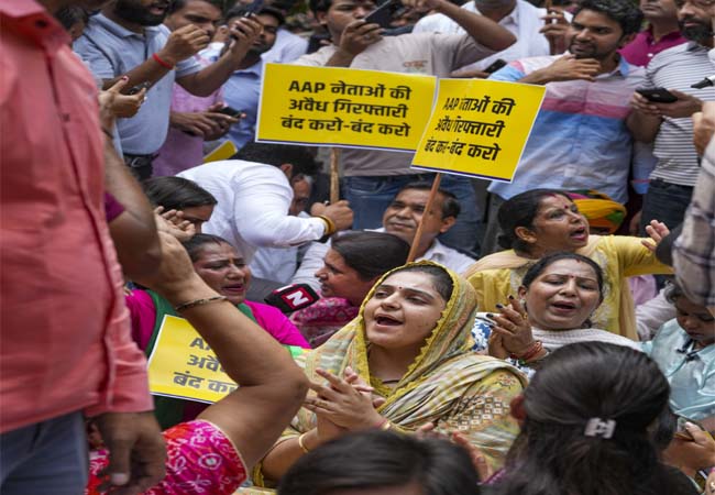 प्रदर्शनकारी डीडीयू मार्ग पर आप के पुराने कार्यालय के पास जमा हुए, जिन्हें पुलिस ने भाजपा मुख्यालय की ओर मार्च करने से रोक दिया। प्रदर्शनकारियों को रोकने के लिए अवरोधक लगाए गए थे।