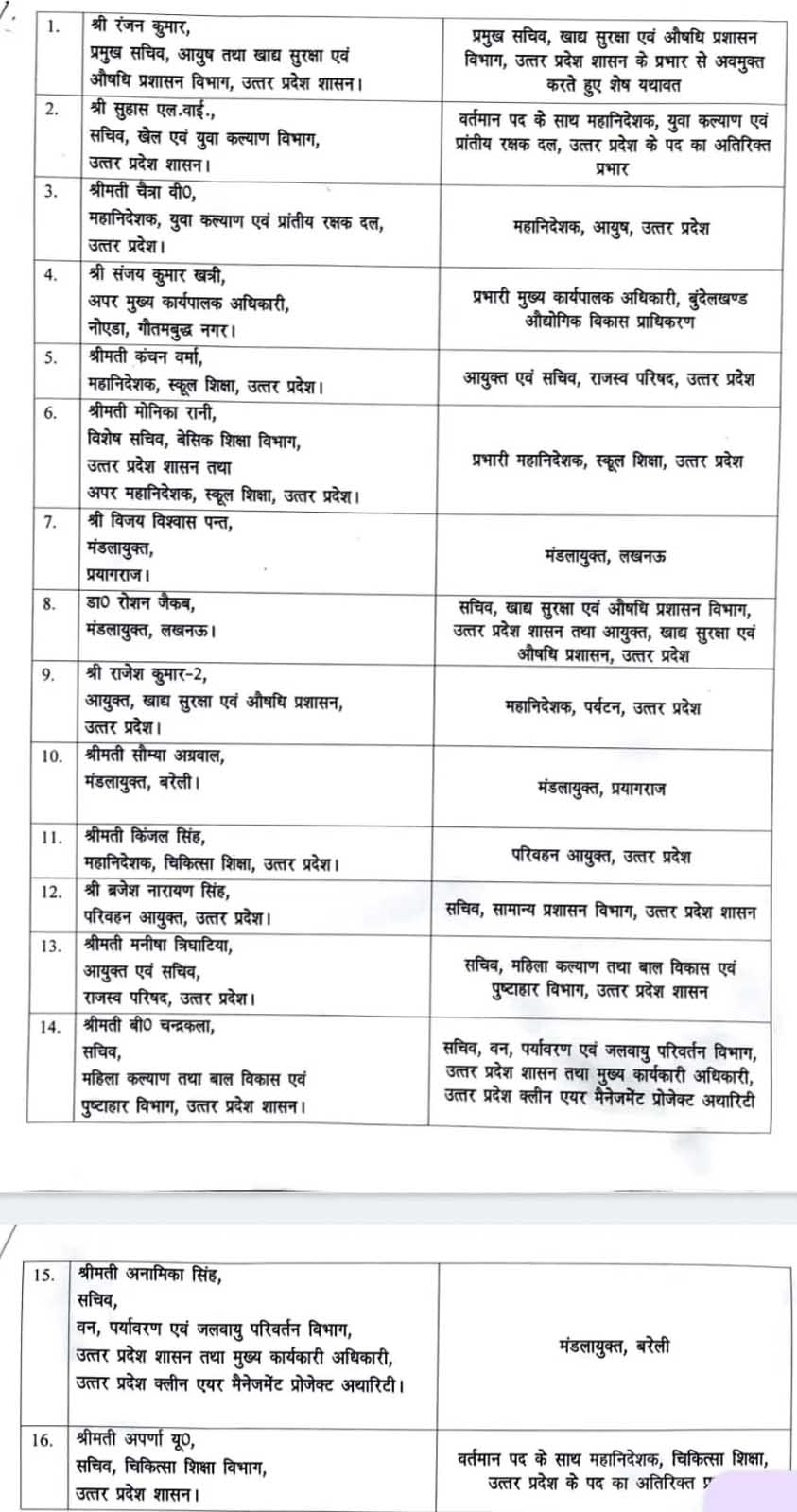 यूपी में प्रशासनिक फेरबदल, रोशन जैकब समेत 16 IAS के तबादले, ब्यूरोक्रेसी में हड़कंप