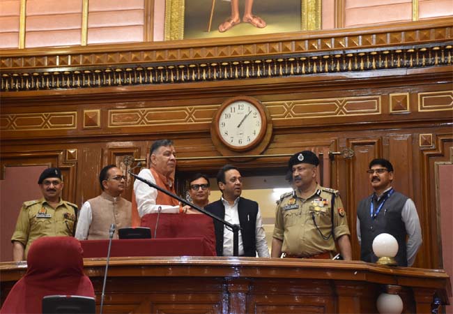 मानसून सत्र को देखते हुए विधानसभा परिसर में सुरक्षा व्यवस्था की भी समीक्षा की गई। इस दौरान विधानसभा अध्यक्ष ने जलभराव से बचाव के पुख्ता इंतजाम, पुलिस बल की तैनाती और अन्य व्यवस्थाओं पर विशेष निर्देश दिए। बैठक में प्रमुख सचिव प्रदीप दुबे, डीजीपी राजीव कृष्ण, प्रमुख सचिव गृह संजय प्रसाद, एडीजी सुरक्षा रघुबीर लाल, लखनऊ डीएम विशाख जी. और पुलिस कमिश्नर अमरेंद्र सेंगर समेत कई वरिष्ठ अधिकारी मौजूद रहे।