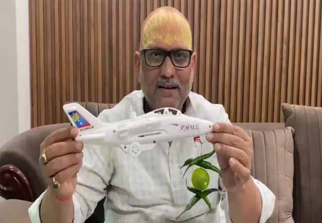 Sandesh Wahak Digital Desk: कांग्रेस की उत्तर प्रदेश इकाई के अध्यक्ष अजय राय ने राफेल लड़ाकू विमान का उपहास उड़ाते हुए प्रतीकात्मक तौर पर एक खिलौना विमान से ‘नींबू-मिर्च’ लटकाकर सरकार से पूछा कि राफेल के ऊपर से ‘नींबू-मिर्च’ कब हटेगा। सत्तारूढ़ भाजपा ने इस पर तीखी प्रतिक्रिया व्यक्त की है।