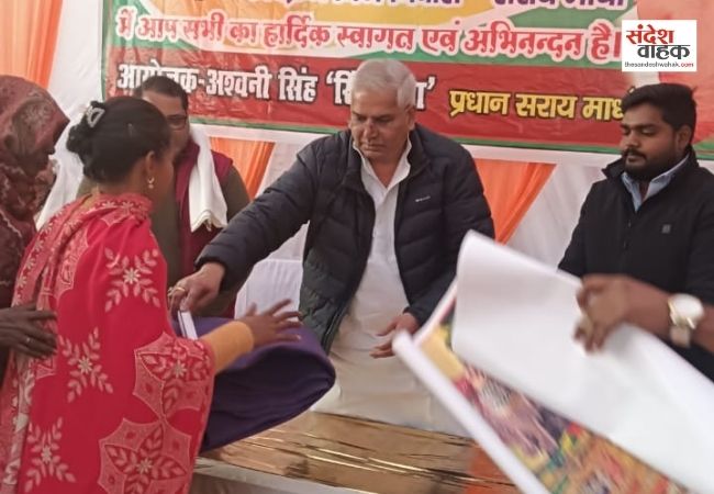 सिंहपुर (अमेठी): कड़ाके की ठंड और शीतलहर को देखते हुए अमेठी के तिलोई विधानसभा क्षेत्र में मानवता की सेवा का हाथ बढ़ाया गया है। शनिवार को सिंहपुर विकास खंड की ग्राम पंचायत सराय माधव में एक विशाल कंबल वितरण कार्यक्रम का आयोजन किया गया, जिसमें उत्तर प्रदेश सरकार के मंत्री और क्षेत्रीय विधायक राजा मयंकेश्वर शरण सिंह ने मुख्य अतिथि के रूप में शिरकत की।