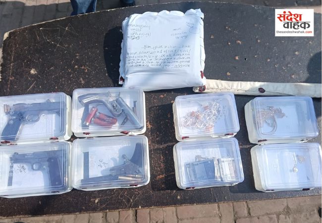 अवैध असलहे: 2 पिस्टल (9mm और .32 बोर), 2 तमंचे और 23 जिंदा कारतूस।