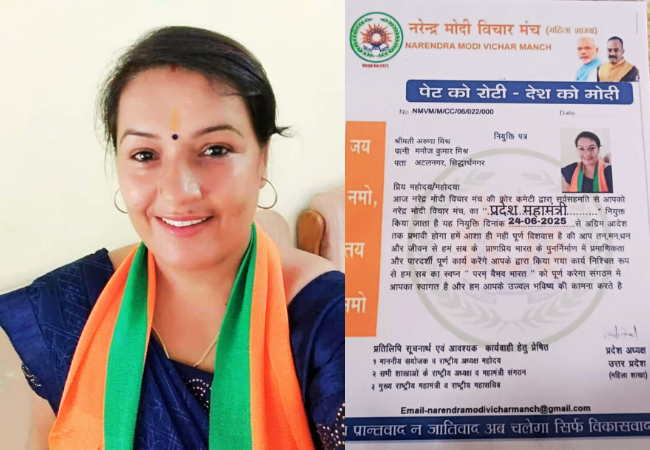 Siddharthanagar News: अरुणा मिश्रा को मिला बड़ा दायित्व, “नरेंद्र मोदी विचार मंच” की प्रदेश महामंत्री नियुक्त