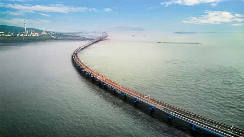 • लंबाई और लेन: अटल सेतु लगभग 21.8 किलोमीटर तक फैला है, जिसमें छह लेन हैं। हर एक की लंबाई समुद्र के ऊपर लगभग 16.5 किमी और जमीन पर 5.5 किमी है।