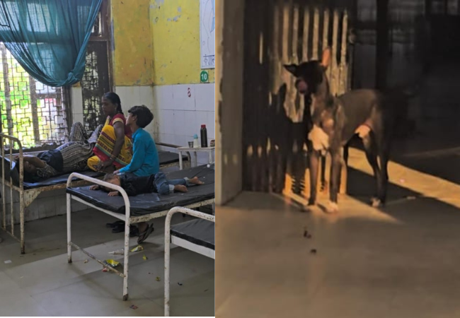 वार्ड में खुलेआम घूमता कुत्ता न सिर्फ अस्पताल की स्वच्छता पर सवाल उठाता है, बल्कि मरीजों की सुरक्षा पर भी गंभीर खतरा पैदा करता है। मरीजों ने शिकायत की कि अस्पताल की मरम्मत सालों से नहीं हुई है। दीवारों का प्लास्टर झड़ चुका है और पेंट पूरी तरह उखड़ गया है।