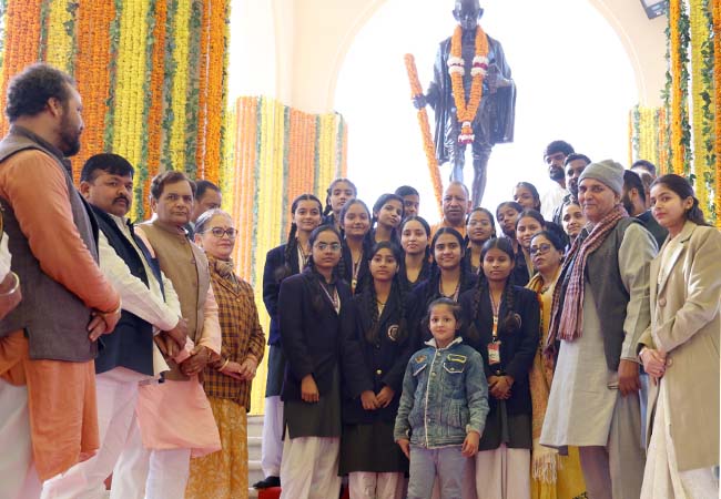 सीएम योगी ने बच्चों के साथ स्वारांजलि में हिस्सा लिया। इस दौरान बच्चों ‘रघुपति राघव राजाराम…’, वैष्णव जन तो तेने कहिये जे पीड़ परायी जाणे रे…’ जैसे गीतों को मधुर स्वर में प्रस्तुत किया। कार्यक्रम के बाद सीएम योगी ने बच्चों के साथ फोटो भी खिंचाई। इस दौरान महापौर सुषमा खर्कवाल, विधायक नीरज बोरा, राजेश्वर सिंह, अमरेश कुमार, विधान परिषद सदस्य लाल जी प्रसाद निर्मल आदि गणमान्य लोगों ने भी बापू को अपनी श्रद्धांजलि अर्पित करते हुए उनकी प्रतिमा पर पुष्पांजलि अर्पित की है।