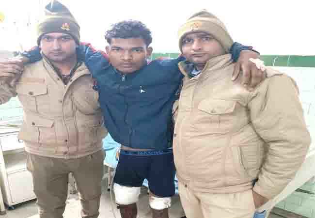 दो थानों  की पुलिस ने मुठभेड़ के बाद बदमाश को पकड़ा