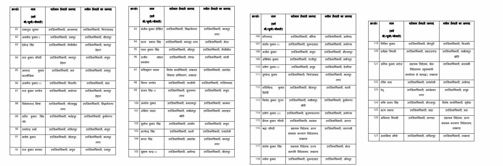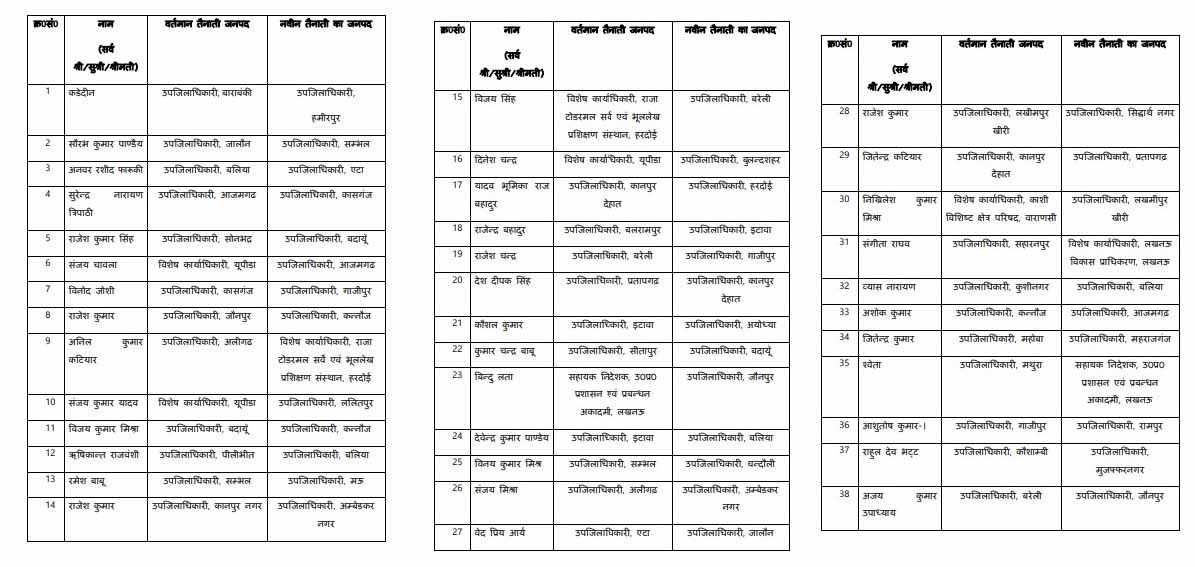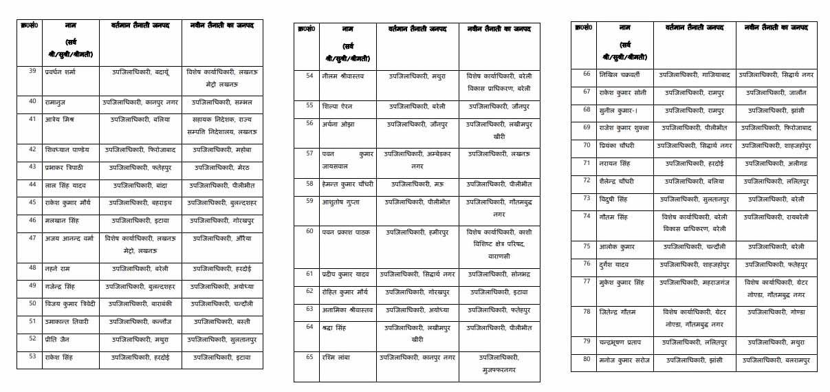 - कुमार चंद्रबाबू, जो अब तक सीतापुर के एसडीएम थे, उन्हें बदायूं भेजा गया है।