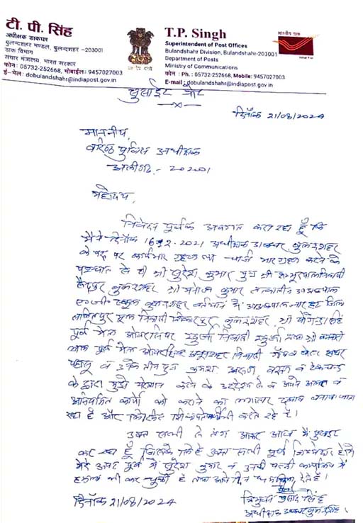 Bulandshahr News: डाकघर अधीक्षक ने खुद को मारी गोली, सुसाइड से पहले SSP को लिखा पत्र