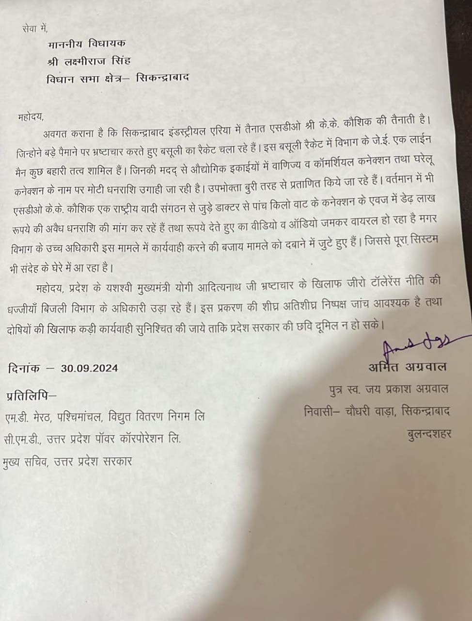 वहीं PVVNL के अधीक्षण अभियंता ने बताया कि निगम की एमडी को वीडियो और पत्र भेजा गया है। मामले में निगम की एमडी द्वारा ही कार्रवाई की जाएगी। हालांकि सिकंदराबाद विधायक लक्ष्मीराज सिंह ने रिश्वतखोर अधिकारी पर शासन स्तर से कार्रवाई कराने की बात कही है।
