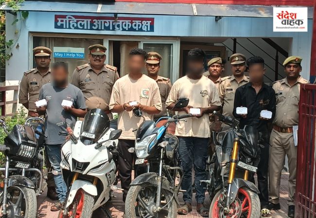 Sandesh Wahak Digital Desk: लखनऊ में पुलिस कमिश्नरेट की सुशांत गोल्फ सिटी थाना पुलिस और दक्षिणी जोन की सर्विलांस सेल की संयुक्त टीम ने चेन स्नैचिंग करने वाले एक बड़े गिरोह का पर्दाफाश किया है। पुलिस ने इस गिरोह के चार शातिर सदस्यों को गिरफ्तार किया है, जिनसे सोने की चेन और घटना में इस्तेमाल की गई चार मोटरसाइकिलें बरामद की गई हैं।
