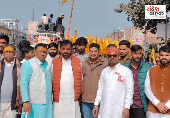 कैसरगंज (बहराइच): नगर पंचायत कैसरगंज में रविवार दोपहर खाटू श्याम के भक्तों का उत्साह चरम पर रहा। श्री खाटू श्याम परिवार की ओर से एक भव्य ‘निशान शोभायात्रा’ निकाली गई, जिसमें बड़ी संख्या में पुरुष और महिला श्रद्धालु हाथों में निशान ध्वज लेकर शामिल हुए।