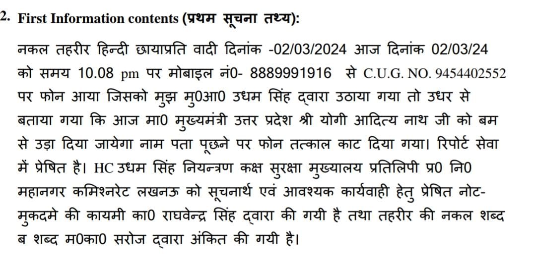 CM Yogi News: उत्तर प्रदेश के मुख्यमंत्री योगी आदित्यनाथ को एक बार फिर बम से उड़ाने की धमकी मिली है। शनिवार रात को सुरक्षा मुख्यालय के सीयूजी नंबर पर एक अज्ञात शख्स ने फोन किया और सीएम योगी बम से उड़ाने की धमकी दी। मामले में महानगर कोतवाली में तैनात हेड कांस्टेबल उधम सिंह की तहरीर पर मुकदमा दर्ज कर लिया गया है। पुलिस पूरे मामले की छानबीन में जुट गई है।