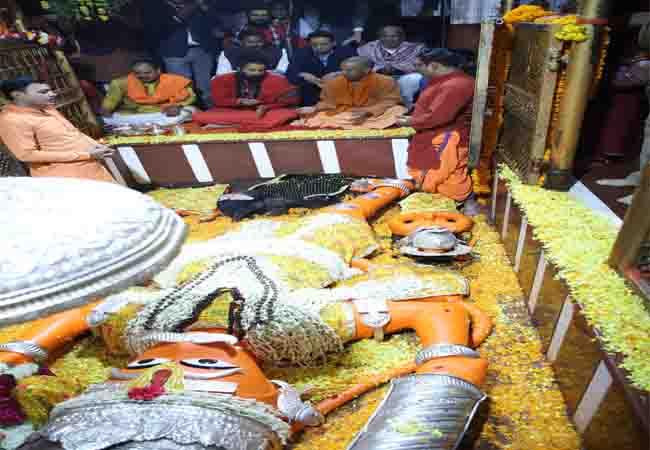 मुख्यमंत्री ने संगम ऐरावत घाट और संगम नोज घाट का निरीक्षण कर किया त्रिवेणी पूजन