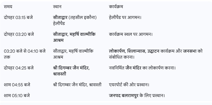 Sandesh Wahak Digital Desk: उत्तर प्रदेश के मुख्यमंत्री योगी आदित्यनाथ आज, 27 सितंबर को श्रावस्ती जिले के दौरे पर रहेंगे। इस संक्षिप्त दौरे के दौरान वे कई विकास परियोजनाओं का लोकार्पण और शिलान्यास करने के साथ-साथ एक जनसभा को संबोधित करेंगे। उनका यह दौरा महर्षि वाल्मीकि की विरासत और जैन धर्म के पवित्र स्थलों पर केंद्रित रहेगा।