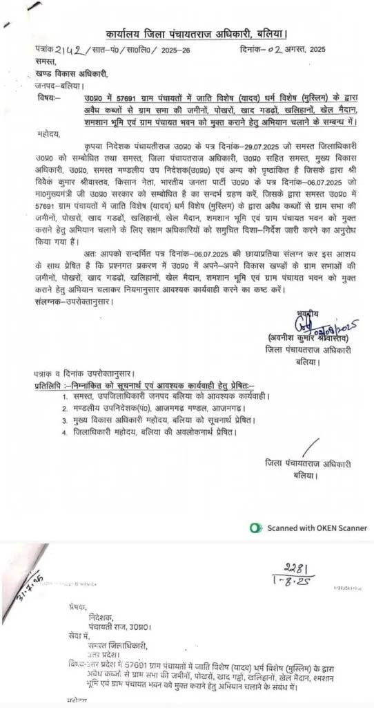 Sandesh Wahak Digital Desk: उत्तर प्रदेश के मुख्यमंत्री योगी आदित्यनाथ ने पंचायती राज विभाग के उस विवादास्पद आदेश पर कड़ा ऐतराज जताया है, जिसमें ग्रामसभा भूमि से अवैध कब्जा हटाने की कार्रवाई को जाति विशेष (यादव) और धर्म विशेष (मुस्लिम) से जोड़ते हुए निर्देश जारी किए गए थे।