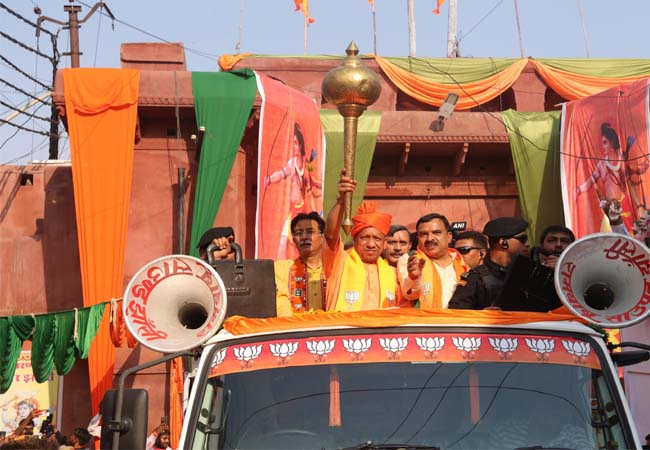Sandesh Wahak Digital Desk: उत्तर प्रदेश के मुख्यमंत्री योगी आदित्यनाथ बुधवार को झांसी पहुंचे। यहां उन्होंने लक्ष्मी गेट स्थित हनुमान मंदिर में दर्शन करने के बाद रोड शो की शुरुआत की। मुख्यमंत्री योगी आदित्यनाथ को देखने के लिए लोगों की भारी भीड़ सड़कों पर उमड़ी। सड़क के दोनों ओर स्थानीय लोगों की भीड़ सीएम योगी पर फूलों की बारिश करती नजर आई। रोड शो के दौरान बड़ी संख्या में महिलाएं भी सीएम योगी को देखने के लिए मौजूद रहीं।