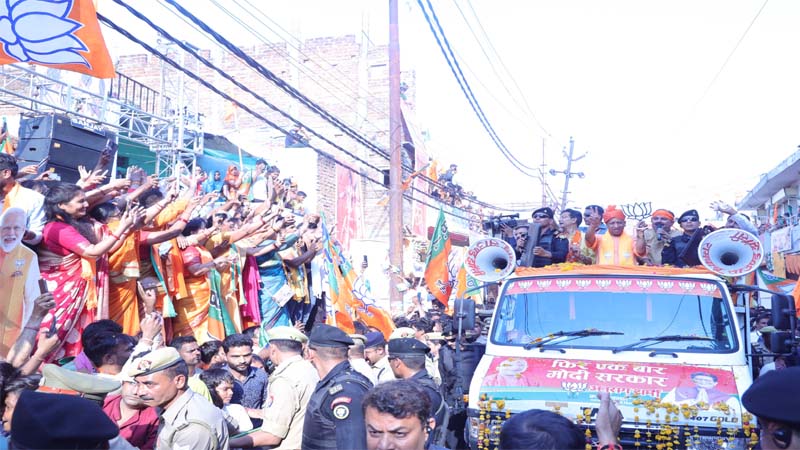 झांसी में CM योगी के रोड शो में उमड़ा जनसैलाब, MP के सीएम मोहन यादव रहे शामिल