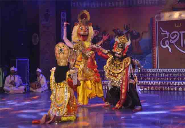 कार्यक्रम की शुरुआत मध्य प्रदेश के मटकी लोकनृत्य से हुई, जिसमें पारंपरिक गीत ‘सायबा म्हारो लाइ करण फूल झुमको’ पर कलाकारों ने शादी-ब्याह की खुशियों को खूबसूरत अंदाज में प्रदर्शित किया। इसी क्रम में ओडिशा के छउ नृत्य और कथक का अद्भुत संगम देखने को मिला। कलाकारों ने शिव स्तुति ‘गिरीशं गणेशं गले नीलकण्ठं’ पर समुद्र मंथन की कथा को मंच पर जीवंत कर दिया।