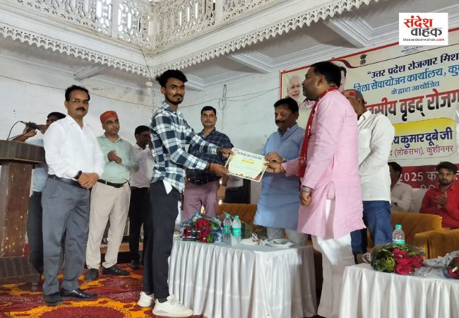 कुशीनगर: जिले के उदित नारायण इंटरमीडिएट कॉलेज में आयोजित एक दिवसीय वृहद रोजगार मेला में बड़ी संख्या में युवाओं को नौकरी मिली है। इस मेले में कुल 1252 अभ्यर्थियों ने साक्षात्कार दिया, जिनमें से 586 योग्य उम्मीदवारों का चयन निजी क्षेत्र की कंपनियों के लिए किया गया।