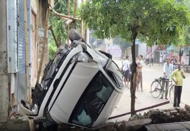 यह घटना भरथना-ऊसराहार मार्ग के ब्रह्मनगर मोहल्ले की है। प्रत्यक्षदर्शियों के मुताबिक, कार तेज रफ्तार में बाजार की ओर से आ रही थी। अचानक गाड़ी मकान की सीढ़ियों से टकराई और पलटकर सीधे एक निर्माणाधीन मकान में जा घुसी। हादसे की आवाज इतनी तेज थी कि पूरा मोहल्ला दहल उठा और लोग घरों से बाहर निकल आए। स्थानीय लोगों का कहना है कि चालक शराब के नशे में था और गाड़ी से स्टंट कर रहा था, तभी नियंत्रण खो बैठा।