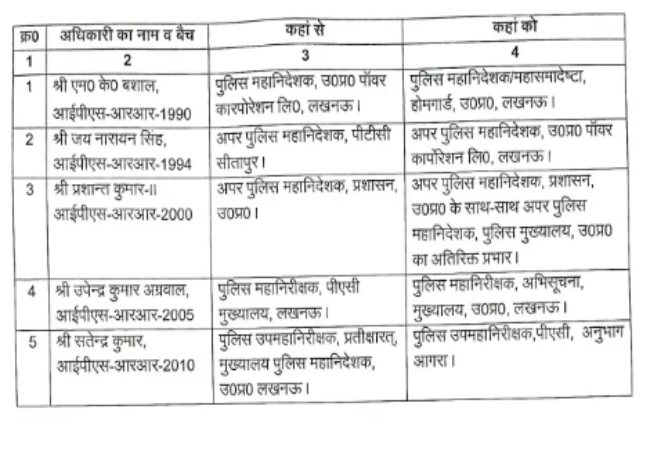 यूपी में पांच आईपीएस अफसरों के तबादले, देखिए किसे कहां मिली नई जिम्मेदारी