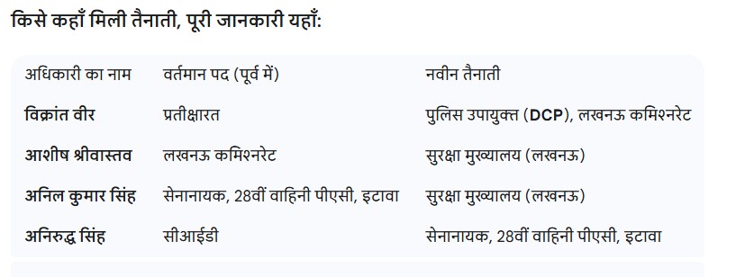 यूपी में चार IPS अफसरों के तबादले, विक्रांत वीर को लखनऊ कमिश्नरेट में मिली अहम जिम्मेदारी