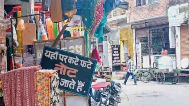 नियम विरूद्ध दुकानों पर बदले जा रहे कटे-फटे नोट