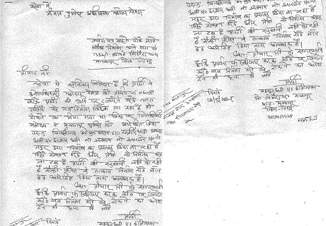 मामला गोंडा जिले के मनकापुर कोतवाली क्षेत्र के ग्राम भिटौरा का है। यहां के रहने वाले महमूद अली व महबूब अली ने 12 मई को मुख्यमंत्री के साथ ही पुलिस अधीक्षक विनीत जायसवाल को प्रार्थना पत्र भेजा है, जिसमें कहा है कि उनकी बपंश की जमीन गाटा संख्या -1332 ग्राम पंचायत भिटौरा, तहसील मनकापुर में स्थित है, जिसके दोनों सहखातेदार हैं तथा उक्त भूमि पर काबिज व दाखिल हैं। आरोप लगाया है कि उसी जमीन के सहखातेदार अब्दुल हसन व अफसर अली, भू-माफिया हैं और जमीनों में विवाद उत्पन्न कराकर दूसरों की भूमि पर अपनी दबंगई के बल पर प्लाटिंग करके विक्रय करने का धंधा करते हैं।