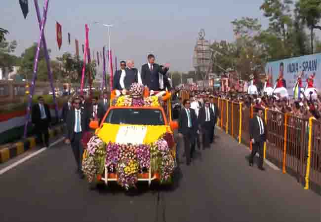 Sandesh Wahak Digital Desk: प्रधानमंत्री नरेन्द्र मोदी और स्पेन के उनके समकक्ष पेड्रो सांचेज ने सोमवार को सुबह गुजरात के वडोदरा शहर में एक खुली जीप में सवार होकर एक रोडशो किया और सड़क के किनारे खड़े लोगों का अभिवादन किया।
