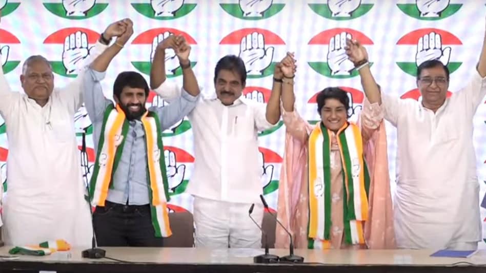 कांग्रेस ने अपने आधिकारिक ‘एक्स’ हैंडल पर फोगाट और पुनिया के साथ राहुल गांधी की एक तस्वीर साझा की।