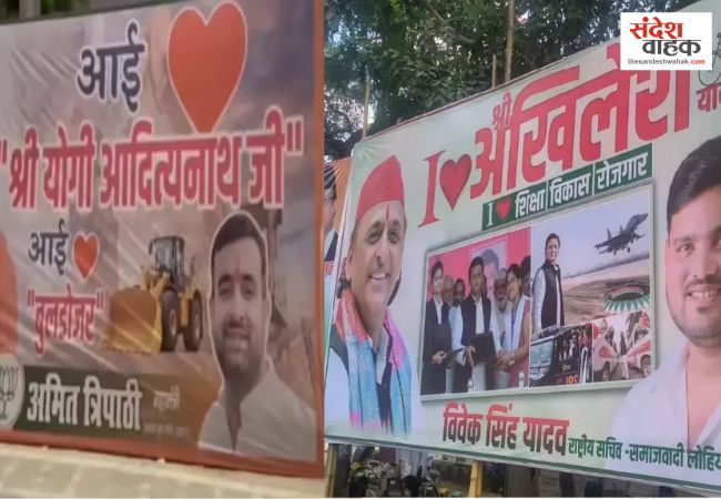 अब इसी के जवाब में समाजवादी पार्टी भी मैदान में कूद गई है। समाजवादी लोहिया वाहिनी के राष्ट्रीय सचिव विवेक सिंह यादव ने लखनऊ में आई लव अखिलेश यादव के होर्डिंग्स लगवा दिए हैं। सपा दफ्तर के बाहर लगे इस पोस्टर में अखिलेश यादव की बड़ी तस्वीर के साथ आई लव शिक्षा, आई लव विकास और आई लव रोज़गार की बात लिखी गई है, जो सोशल मीडिया पर तेज़ी से वायरल हो रहा है।