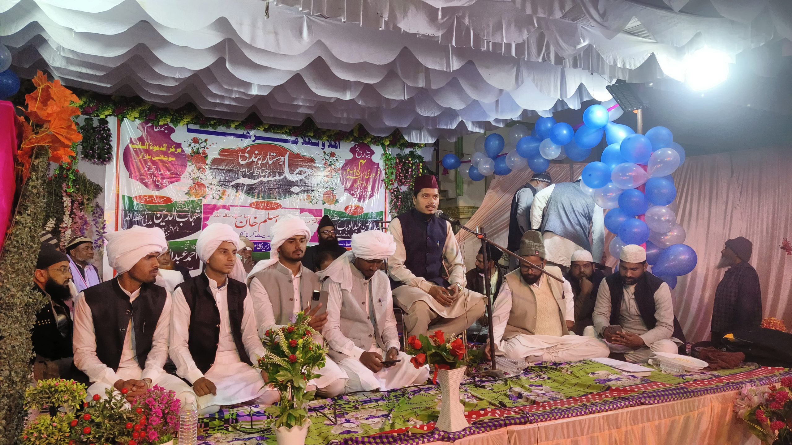 कार्यक्रम का संचालन मौलाना शमीम फैजी ने किया और सदारत मौलाना खुर्शीद अहमद सल्फी ने की। आयोजक समिति के मौलाना अब्दुर्रहमान, मौलाना मोहम्मद फैसल अब्दुल वहाब, और गुड्डू हाशमी ने सभी अतिथियों का स्वागत किया। इस अवसर पर मौलाना नसीम मदनी, मौलाना अब्दुल आखिर मक्की, मौलाना अतिकूर्रहमान, हाफिज उस्मान सल्फी, हाफिज निजामुद्दीन, मास्टर राजीव कुमार, और मास्टर सईदुर्रहमान सहित कई गणमान्य लोग उपस्थित रहे।
