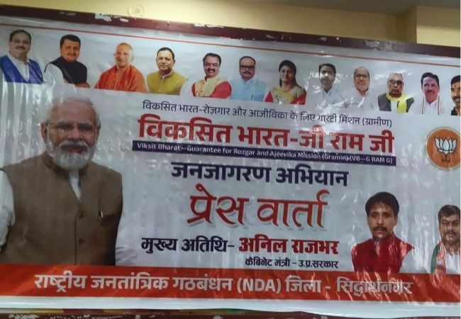 Sandesh Wahak Digital Desk: उत्तर प्रदेश के सिद्धार्थनगर जनपद के प्रभारी मंत्री अनिल राजभर ने जिला मुख्यालय स्थित भाजपा कार्यालय में प्रेस कॉन्फ्रेंस कर केंद्र सरकार की नई योजना “विकसित भारत – जी राम जी” के बारे में महत्वपूर्ण जानकारियां साझा कीं। मंत्री ने इस योजना को ग्रामीण अर्थव्यवस्था और भ्रष्टाचार के विरुद्ध एक ‘सर्जिकल स्ट्राइक’ करार दिया।