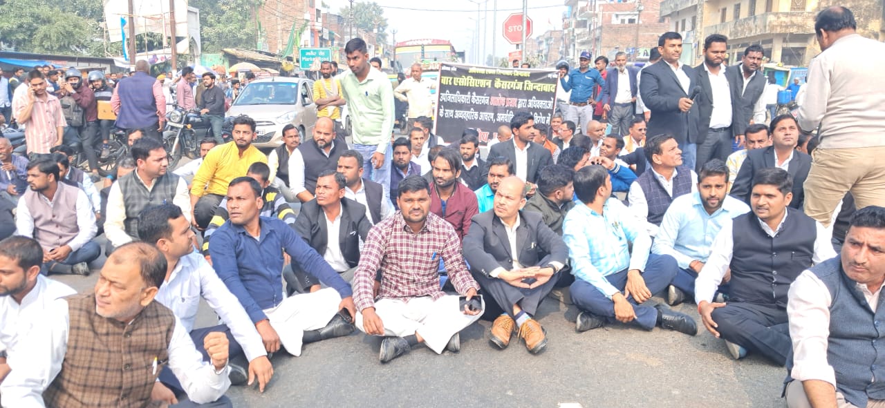 Kaiserganj : SDM आलोक प्रसाद के खिलाफ वकीलों का विरोध, हाईवे जाम कर किया धरना प्रदर्शन