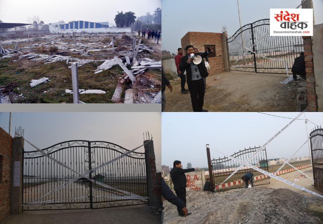 विशेष कार्याधिकारी व उपजिलाधिकारी डॉ. रवि प्रताप सिंह के नेतृत्व में मटका चौराहे से जंगल वाटर पार्क मोड़, भगवान बुद्ध आश्रम के पीछे विकसित की जा रही अवैध प्लाटिंग पर बुलडोजर चलाया गया। सोनू यादव व अन्य द्वारा बिना प्राधिकरण से ले-आउट स्वीकृत कराए प्लाटिंग विकसित की जा रही थी। कार्रवाई के दौरान वहां बनाई गई सड़क, नाला, बाउंड्रीवाल, बिजली के खंभे, पिलर और प्रवेश द्वार समेत समस्त संरचनाओं को ध्वस्त कर दिया गया। यह कार्रवाई लगभग चार बीघे क्षेत्र में की गई।