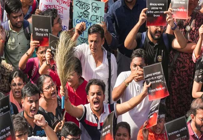Kolkata case: कोलकाता के स्वास्थ्य भवन के पास जूनियर चिकित्सकों ने मंगलवार सुबह धरना दिया और अपना ‘कार्य बंद करो’ आंदोलन जारी रखा।