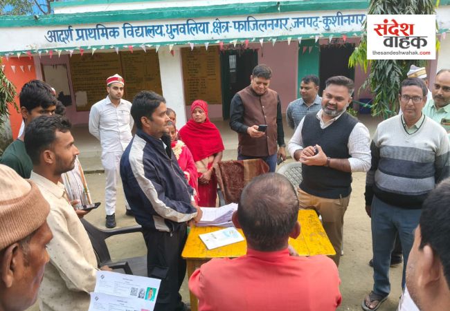 Sandesh Wahak Digital Desk: कुशीनगर जिलाधिकारी (DM) महेंद्र सिंह तंवर ने शनिवार को पडरौना, कसया और फाजिलनगर विकास खंडों के विभिन्न मतदान केंद्रों पर चल रहे विशेष प्रगाढ़ पुनरीक्षण (SIR) कार्यों का अचानक निरीक्षण किया। डीएम ने फॉर्म जमा होने की स्थिति और ऑनलाइन प्रविष्टियों की प्रगति का बारीकी से जायजा लिया और अधिकारियों को कड़े निर्देश दिए।