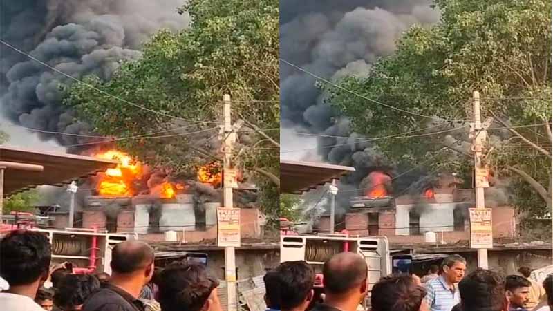 Lucknow : अमौसी रोड स्थित रस फैक्ट्री में लगी भीषण आग, इलाके में मचा हड़कंप