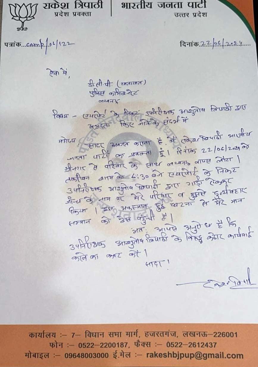 Lucknow: बीजेपी प्रवक्ता राकेश त्रिपाठी ने एसआई पर लगाया अभद्रता का आरोप, निलंबित