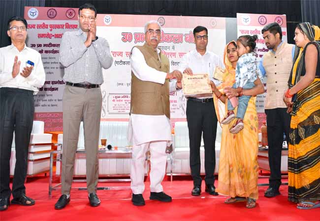 Sandesh Wahak Digital Desk: उत्तर प्रदेश के कैबिनेट मंत्री राकेश सचान ने शनिवार को राज्य स्तरीय पुरस्कार वितरण समारोह-2025 में उत्कृष्ट कारीगरों को टूल किट वितरित किए। यह समारोह उत्तर प्रदेश माटीकला बोर्ड के तत्वावधान में आयोजित किया गया था। इस अवसर पर, मंत्री सचान ने मिट्टी के उत्पादों के उपयोग को बढ़ावा देने और पॉलीथीन के उपयोग को कम करने का आह्वान किया।