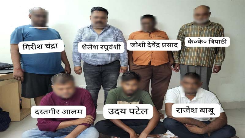 पुलिस ने गिरीश चंद्रा, शैलेश रघुवंशी, जोशी देवेंद्र प्रसाद, केके त्रिपाठी, दस्तगीर आलम, उदय पटेल और राजेश बाबू को गिरफ्तार किया है।
