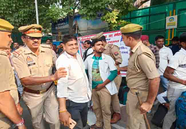 Lucknow: डिप्टी CM बृजेश पाठक के आवास के बाहर प्रदर्शन, एंबुलेंसकर्मियों ने शुरू की भूख हड़ताल