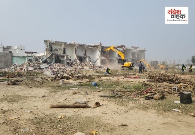 Sandesh Wahak Digital Desk: लखनऊ विकास प्राधिकरण (LDA) ने सोमवार को अवैध निर्माण के खिलाफ एक बड़ी कार्रवाई को अंजाम दिया। अमौसी एयरपोर्ट के पीछे बिना किसी स्वीकृत मानचित्र के बनाए गए 21 रो-हाउस भवनों को (लगभग 5,000 वर्गमीटर) एलडीए की टीम ने जमींदोज कर दिया। करीब 8 घंटे तक चले इस महा-अभियान में भारी पुलिस बल और मशीनों का उपयोग किया गया।