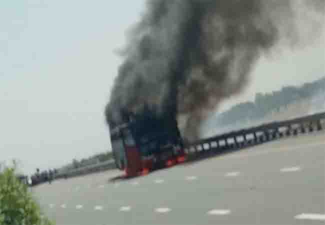 Lucknow: पूर्वांचल एक्सप्रेस वे पर बड़ा हादसा, टायर फटने से बस में लगी आग, 42 यात्रियों…
