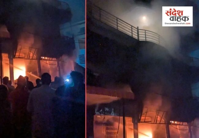 Sandesh Wahak Digital Desk: लखनऊ के मटियारी चौराहे स्थित अवस्थी स्वीट हाउस के बेसमेंट में मंगलवार देर रात अचानक भीषण आग लग गई। आग इतनी विकराल थी कि पूरे परिसर में अफरा-तफरी मच गई। बेसमेंट में फंसे दो कर्मचारियों को पुलिस और दमकल कर्मियों ने दीवार तोड़कर सुरक्षित बाहर निकाला। यह घटना रात के समय हुई, जिसके कारण बड़ा हादसा होने की आशंका थी।