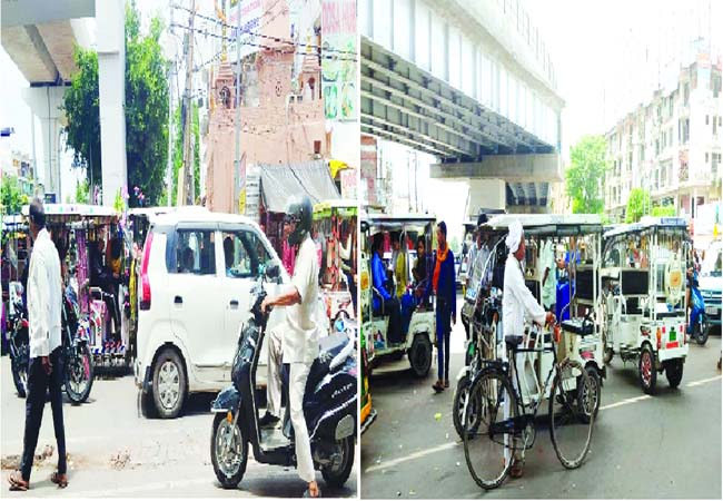 अरविंदो चौकी को जाने वाली सड़क के दोनों तरफ रिक्शा वालों का आतंक, यातायात पुलिस बनी रहती है मूकदर्शक