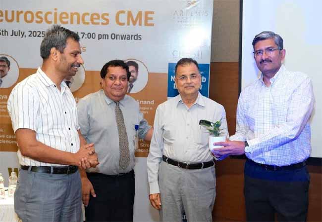 कार्यक्रम का संचालन डॉ. आदित्य गुप्ता ने किया, जो आर्टेमिस हॉस्पिटल्स में चीफ ऑफ न्यूरोसर्जरी, सीएनएस रेडियोसर्जरी और को-चीफ – साइबरनाइफ सेंटर हैं। उन्होंने “कोलेबोरेटिव केसेस इन न्यूरोसाइंसेस” विषय पर अपने व्याख्यान में बताया कि कैसे M6 साइबरनाइफ रेडियोसर्जरी तकनीक आज ब्रेन ट्यूमर जैसे जटिल मामलों में क्रांतिकारी इलाज साबित हो रही है।