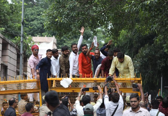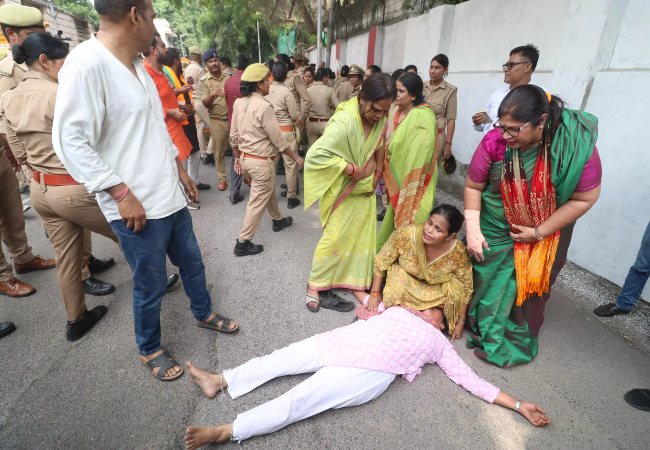 राज्य मंत्री कपिल देव अग्रवाल के आवास के बाहर लगाई गई बैरिकेडिंग को पार करने की कोशिश में पुलिस और बीजेपी कार्यकर्ताओं के बीच जमकर झड़प हुई। इसी दौरान, एक महिला कार्यकर्ता बेहोश हो गईं, जिन्हें पुलिस ने तुरंत अपने वाहन में बैठाकर अस्पताल पहुंचाया। काफी देर तक चली मशक्कत के बाद पुलिस ने कार्यकर्ताओं को समझाया और वे शांत होकर वापस लौट गए। प्रदर्शन में शामिल महिला और युवा कार्यकर्ताओं ने कांग्रेस के साथ-साथ राहुल गांधी और सोनिया गांधी के खिलाफ भी जमकर नारेबाजी की।